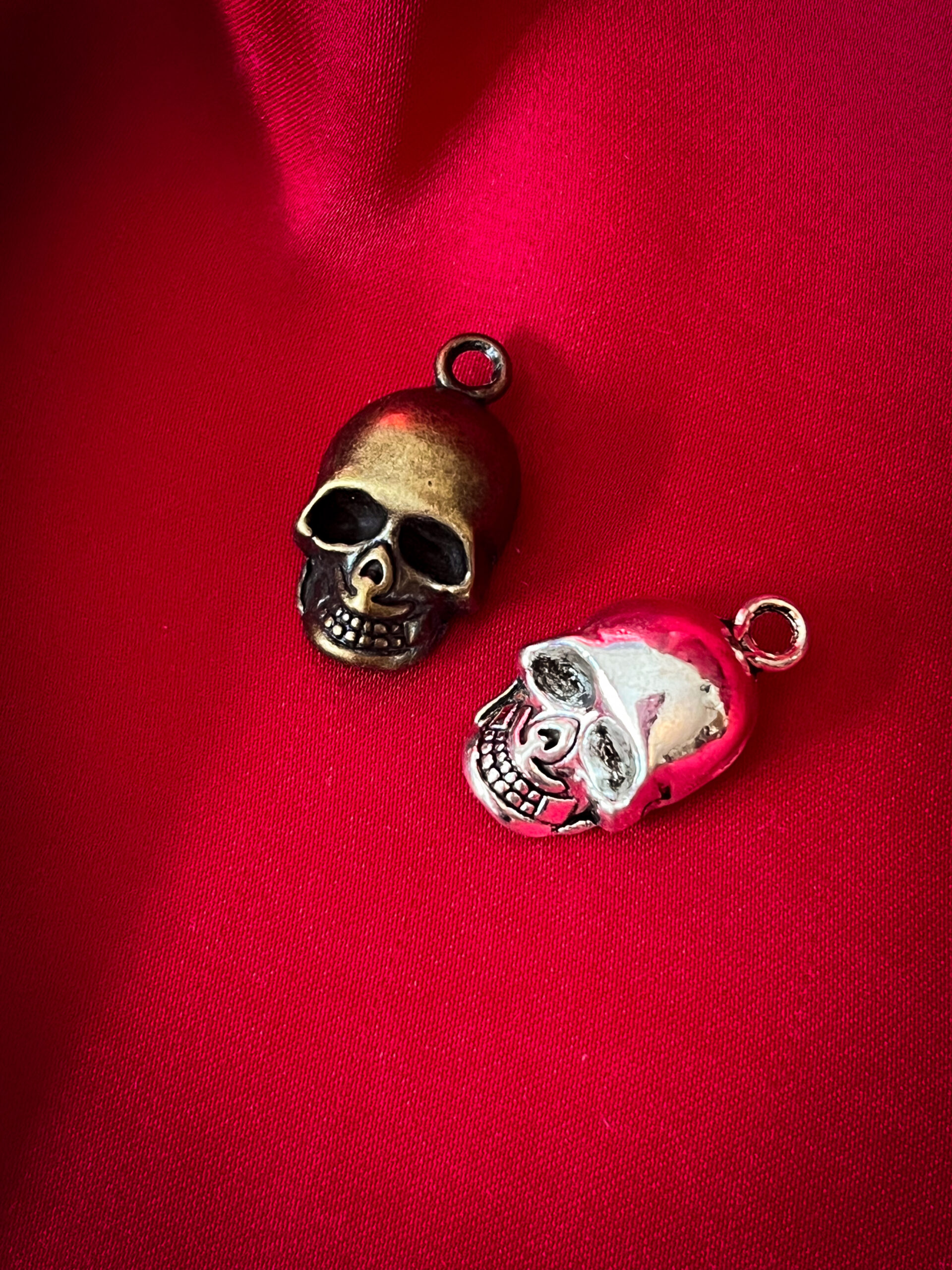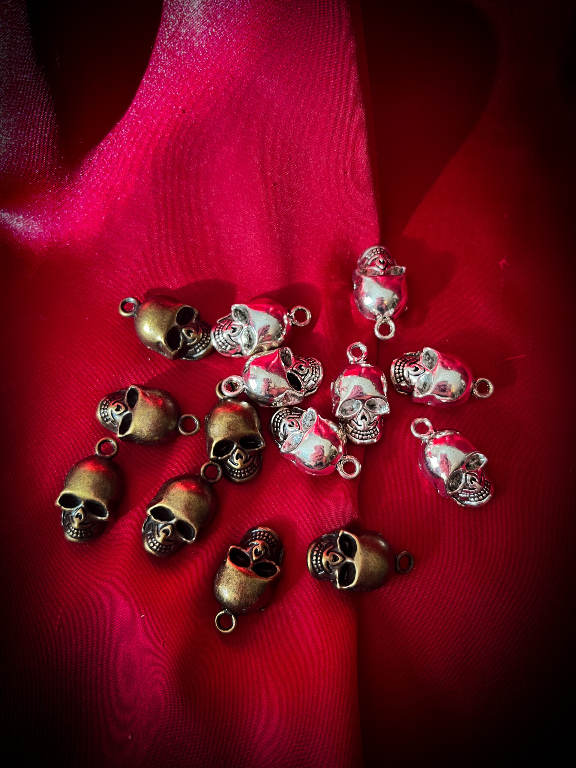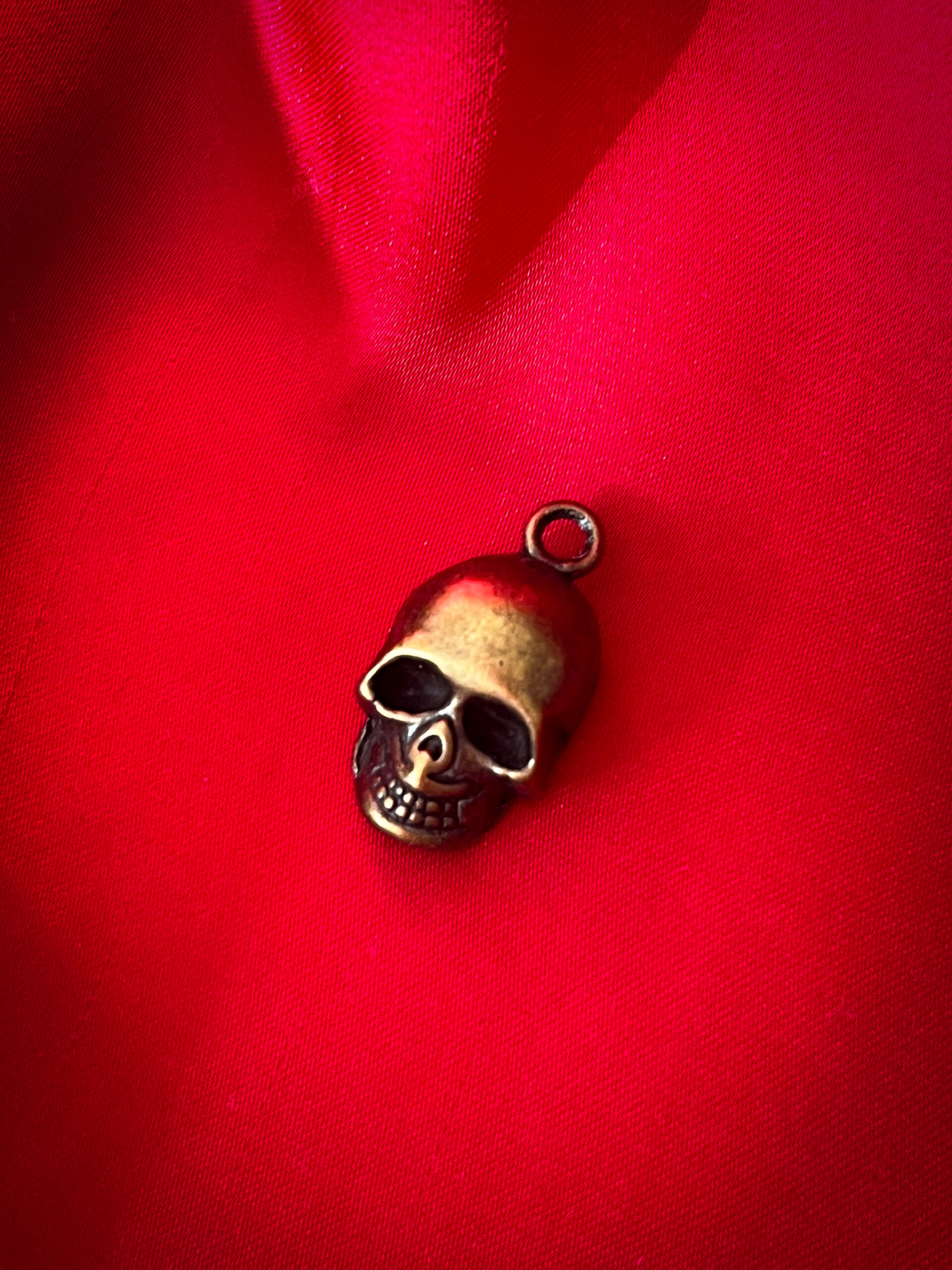 Ett litet metallhänge i form av en klassisk dödskalle. Finns i två varianter – silver och brons – och fungerar lika bra som detalj i smycken som till egna kreativa projekt. Perfekt för den som vill addera en gotisk eller mystisk touch.