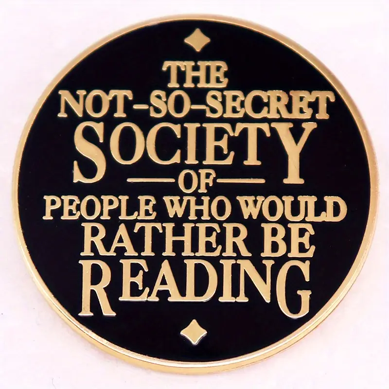 En liten men uttrycksfull pin för alla bokälskare: The Not-So-Secret Society of People Who Would Rather Be Reading. Perfekt att fästa på jackan eller väskan som en diskret signal till andra läsare.